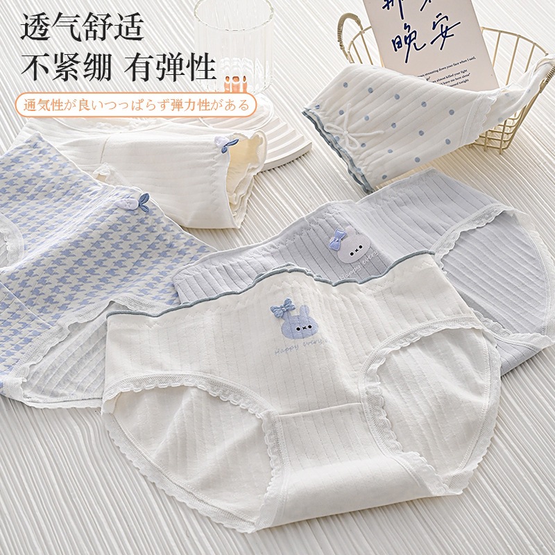 女性用下着、ガーリースタイル、甘いミッドウエスト、かわいいウサギ、和風、シンプルな水玉模様、快適で通気性のある女性用ブリーフ