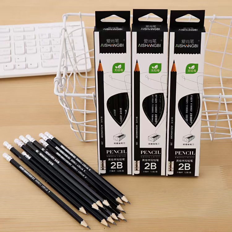 卸売りケース鉛筆児童美術絵画スケッチ鉛筆2b消しゴム鉛筆付き学生絵画試験鉛筆