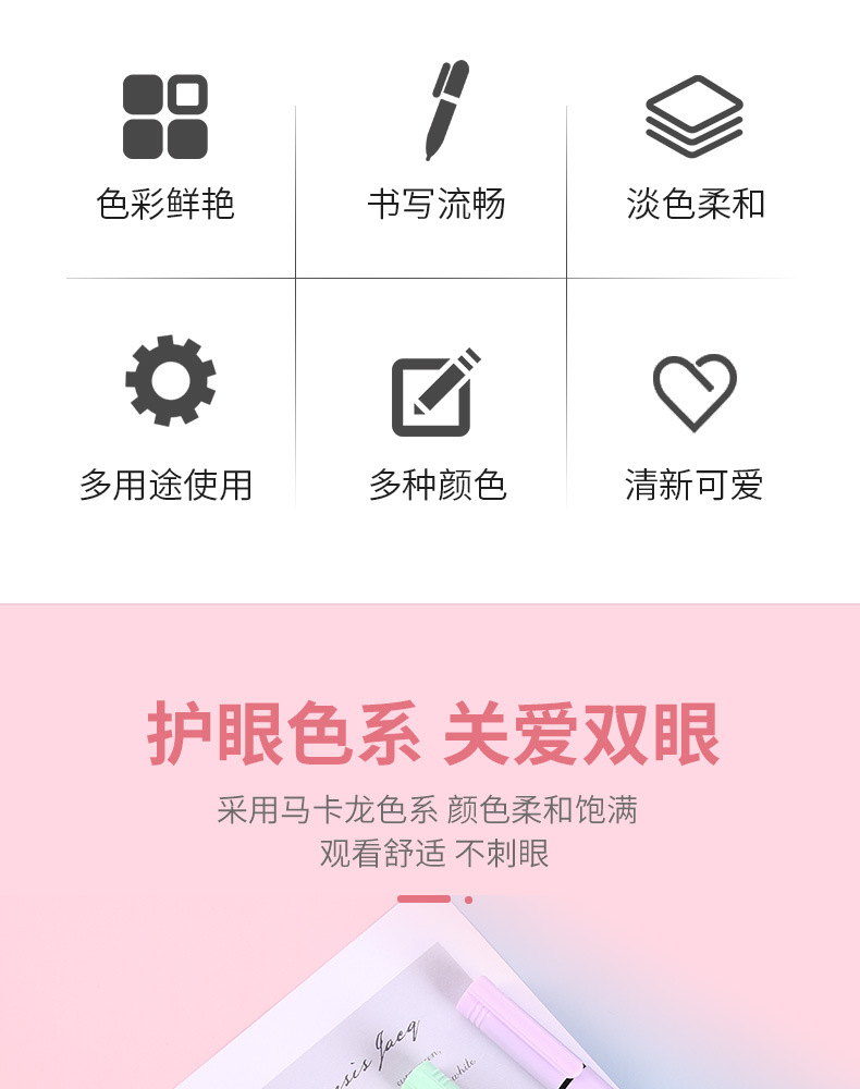 浅色 护眼系列 比普通荧光墨水颜色浅 不会把原本的字覆盖住