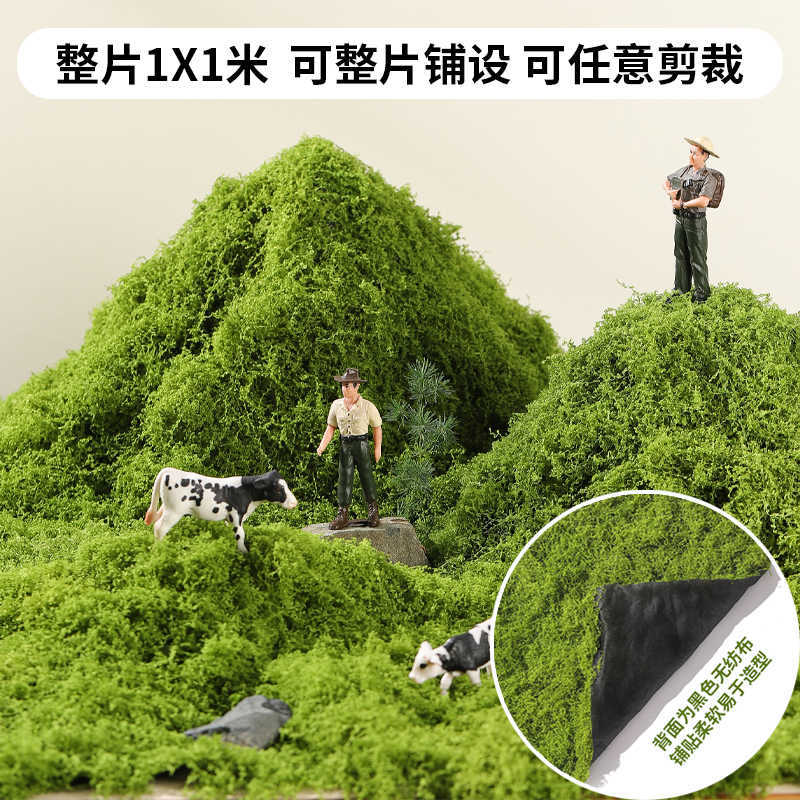 シミュレーション青コケ草の芝生の壁の景観の軟装場の背景のショーウインドーは盆栽の鉢植えの偽コケを展示します。