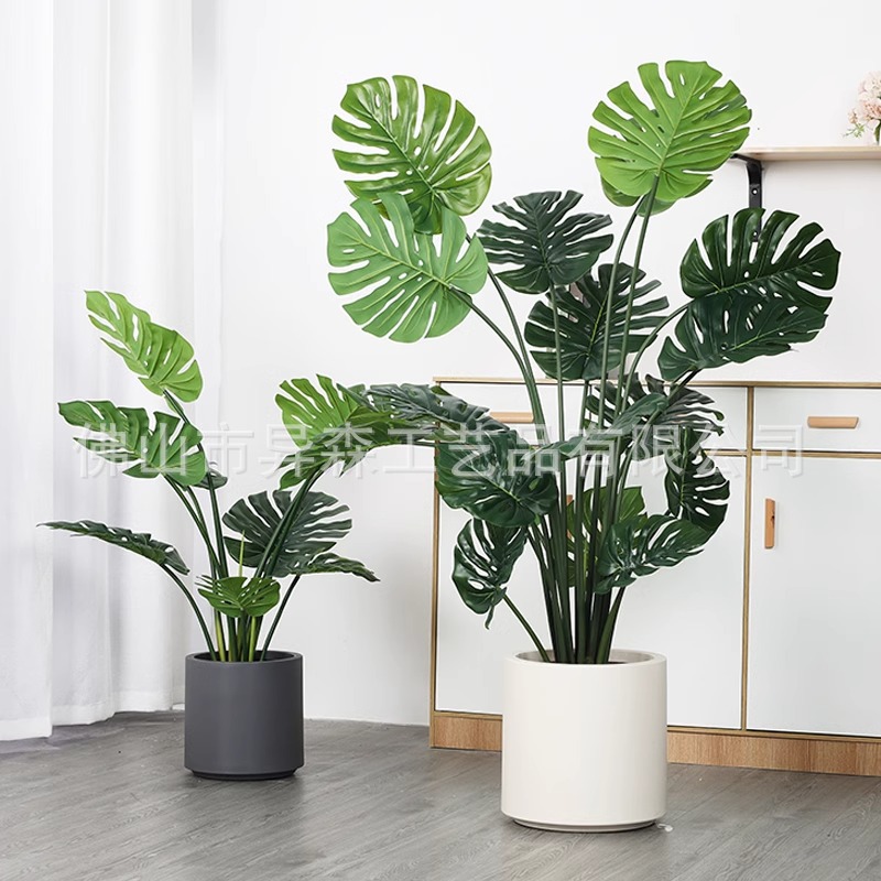 模擬植物モンステラ鉢植え屋内装飾リビングルームの窓ホームハイエンド床置き装飾品偽緑植物盆栽