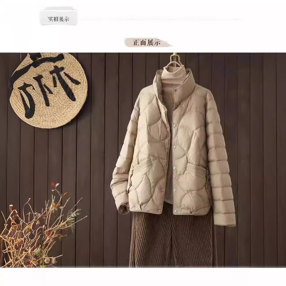 新作文芸範立襟カジュアル春秋軽薄短金ダウンジャケット女性ファッション純色着痩せショートコート