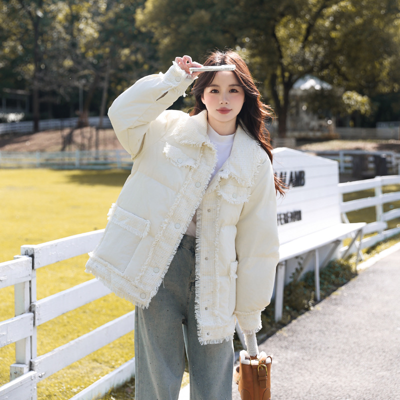 200斤は太った白いアヒルのベルベットの薄い高級な立襟の短いダウンジャケットを着ることができます