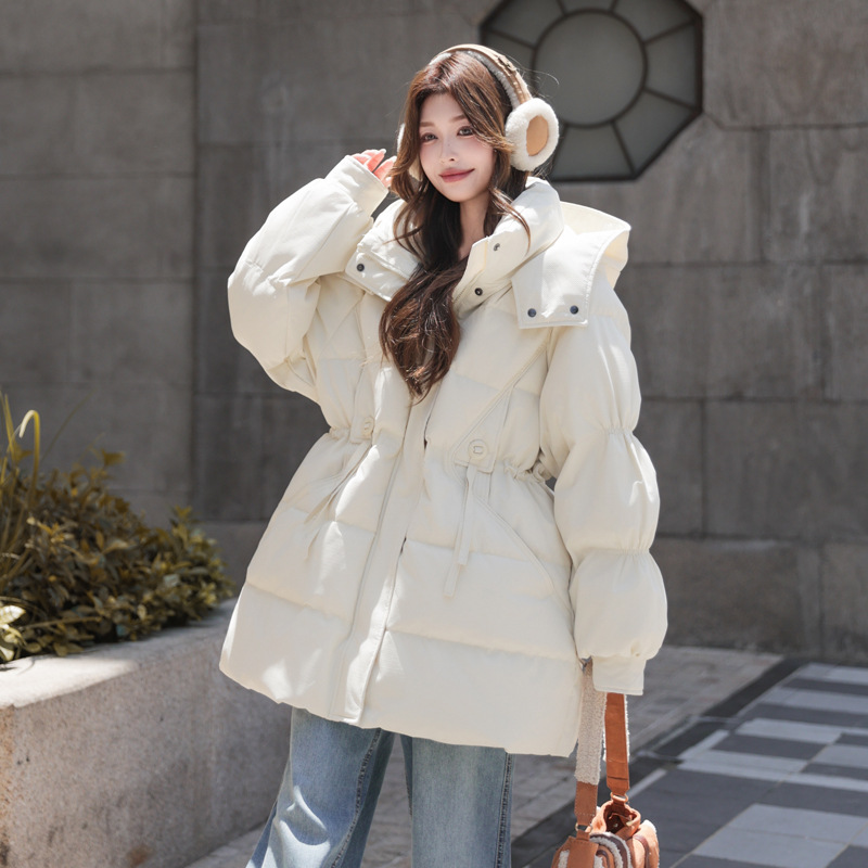 軽薄なダウンジャケットの女性の中の長さはスリムに見えます。