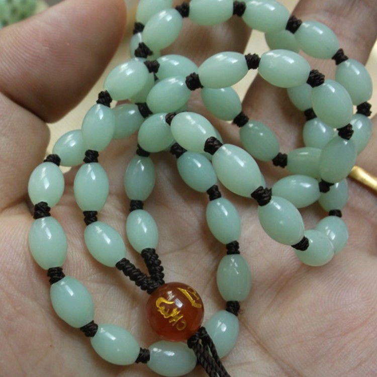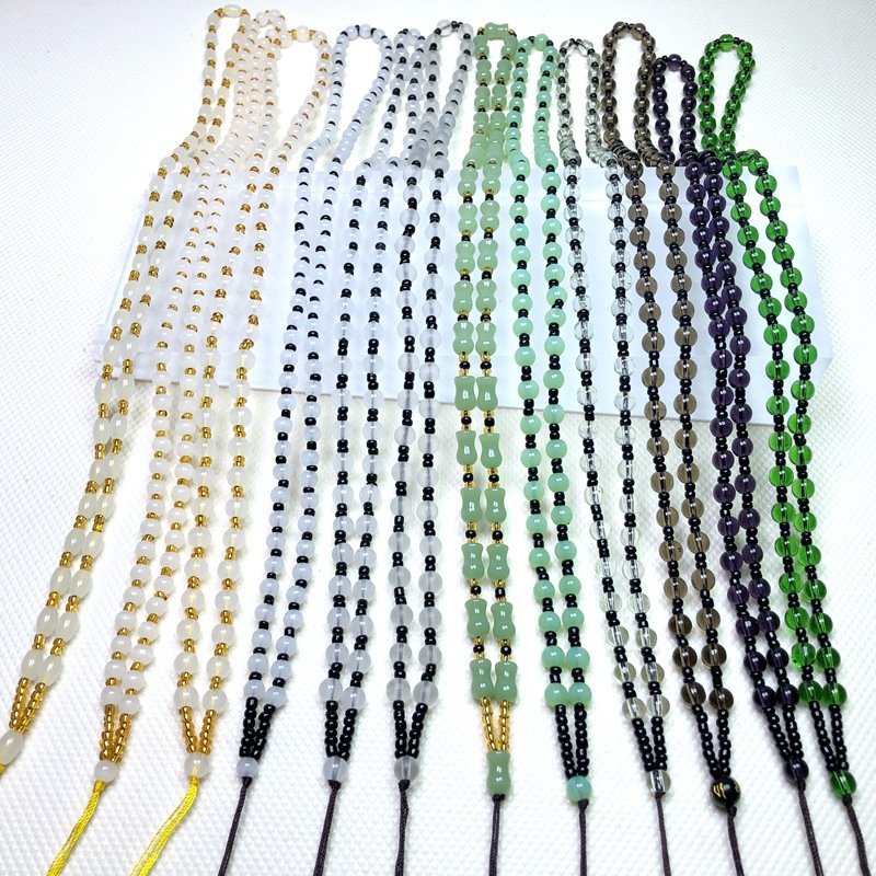 3 色翡翠ペンダントストラップ翡翠ペンダントビーズチェーンラウンドビーズライスビーズジュエリーペンダント翡翠ネックレス吊りロープ