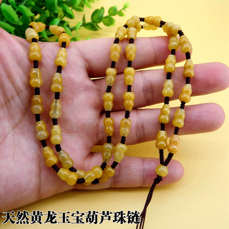天然の黄龍玉の宝葫芦の玉のチェーンのペンダントは縄を掛けて縄を掛けます。