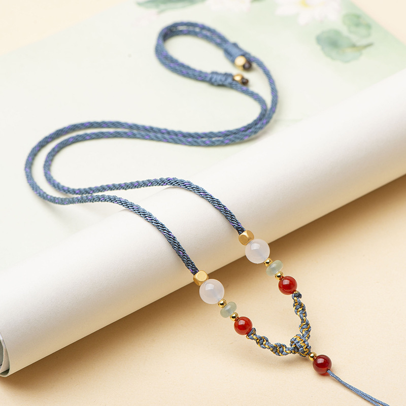 エメラルドクォーツロック翡翠ビーズストラップ手織りハンギングチェーン男性と女性のための翡翠ペンダントストラップ