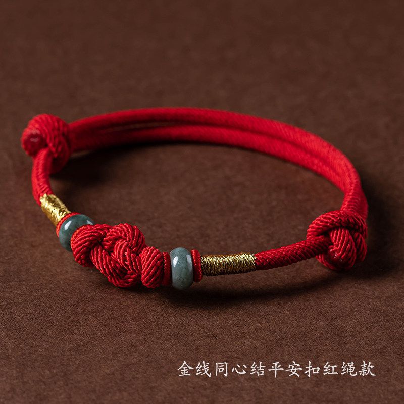 手作りの同心結びの本命年の赤い縄のブレスレットのカップルの手の縄の翡翠の学生の幸運の贈り物の新型