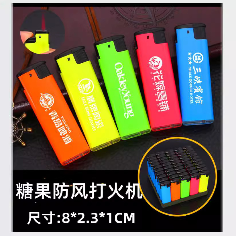 華豊absプラスチックフロスト防風ライターカスタム無料印字広告厚さ防爆安全煙具