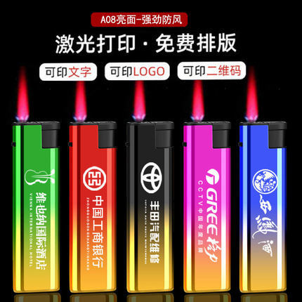 メーカー卸売りプラスチック金属防風空気充填ライターカスタム無料レーザー彫刻広告二次元コード
