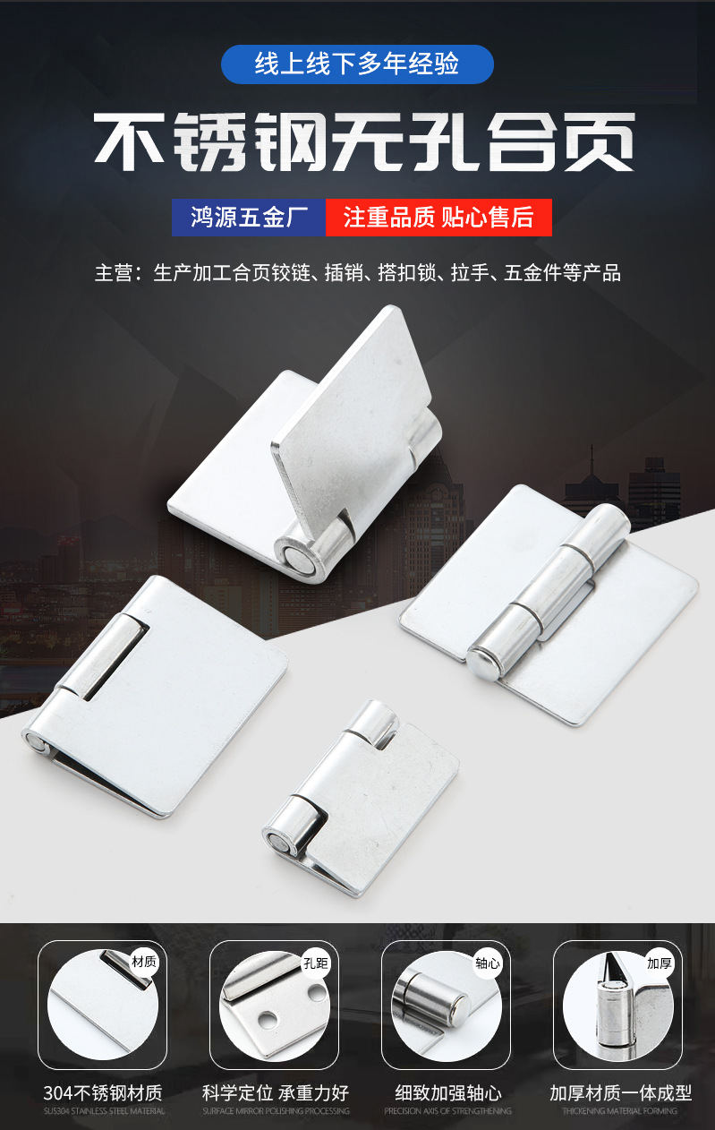304ステンレス鋼穴なしヒンジ厚手工業設備溶接ヒンジ電気機械キャビネット配電箱溶接ヒンジ