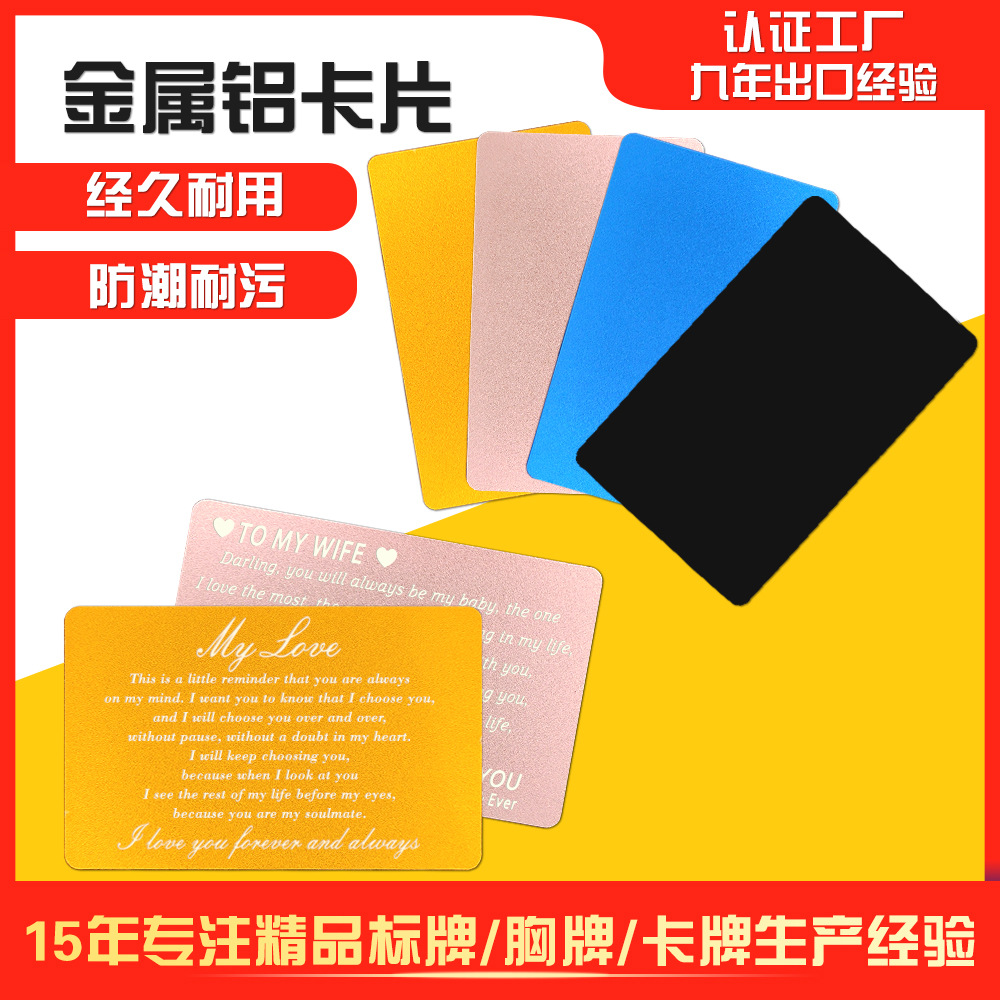 現物アルミニウム合金名刺レーザーレーザー印字材料金属カード厚さカラーアルミシート彫刻はがき