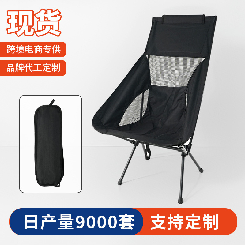 批发跨境超轻便携折叠椅高背透气月亮椅户外露营钓鱼椅蛙脚太空椅