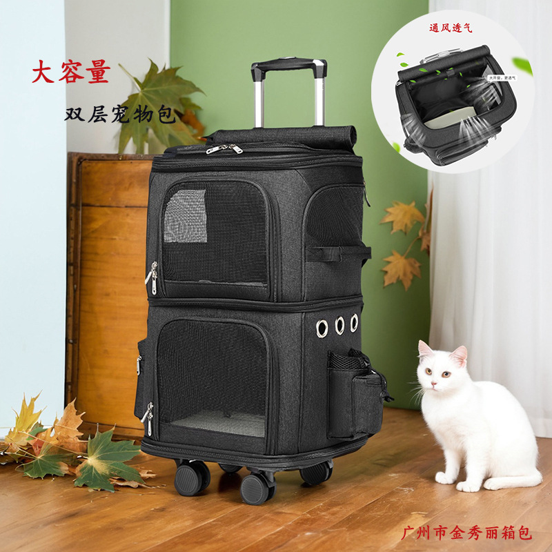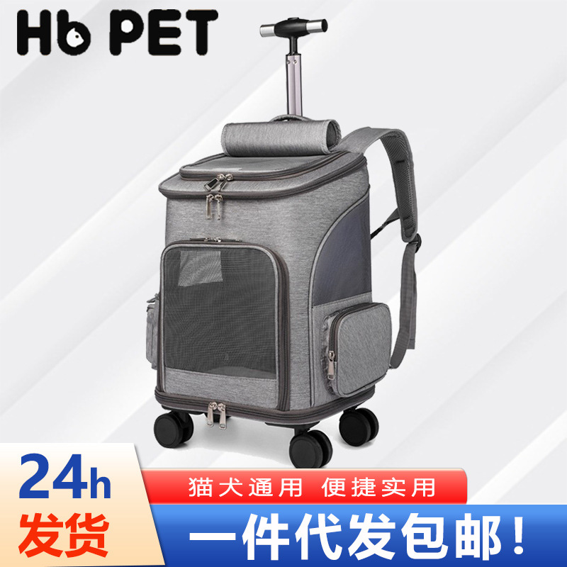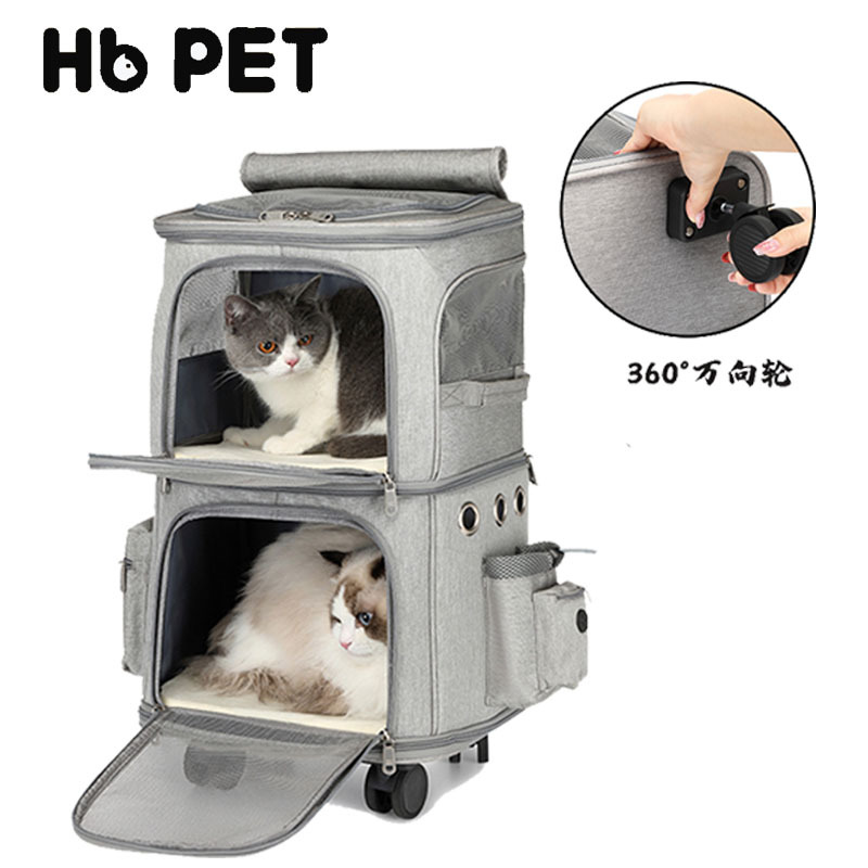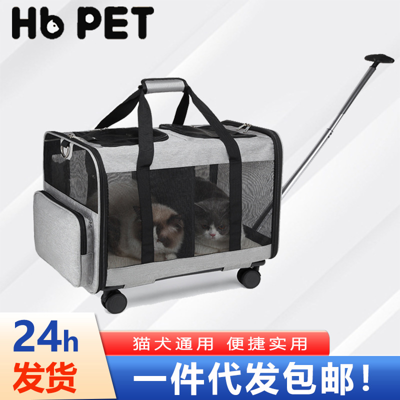 漢邦ペット二重トロリーバッグ屋外旅行万向輪ペットレバー猫バッグ折り畳みペットトロリー箱