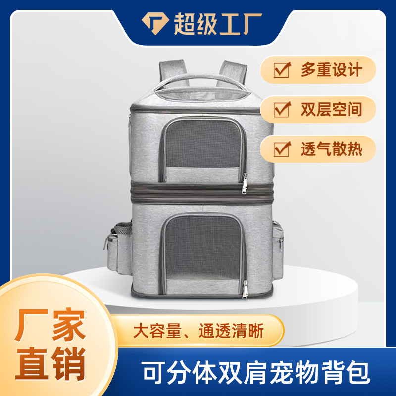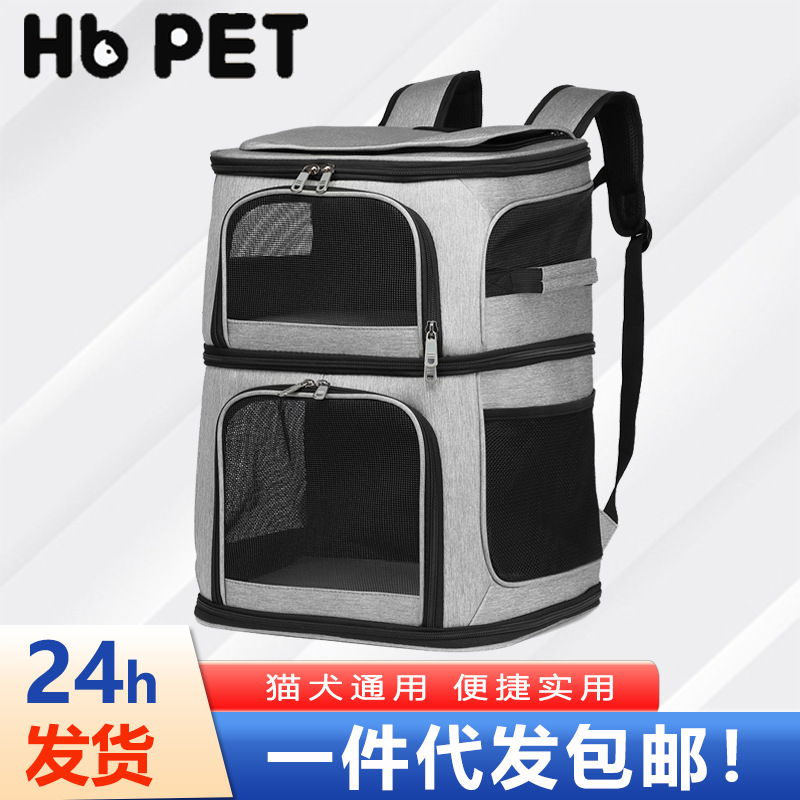 漢邦クロスボーダー二層ペットラバーキャットバッグ旅行アウトドアペット外出スーツケースキャットバッグ大容量卸売り