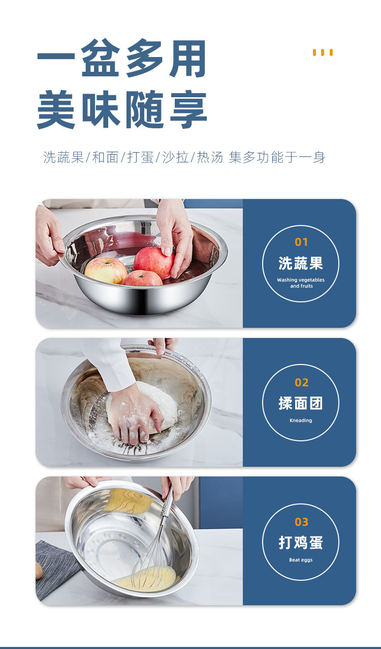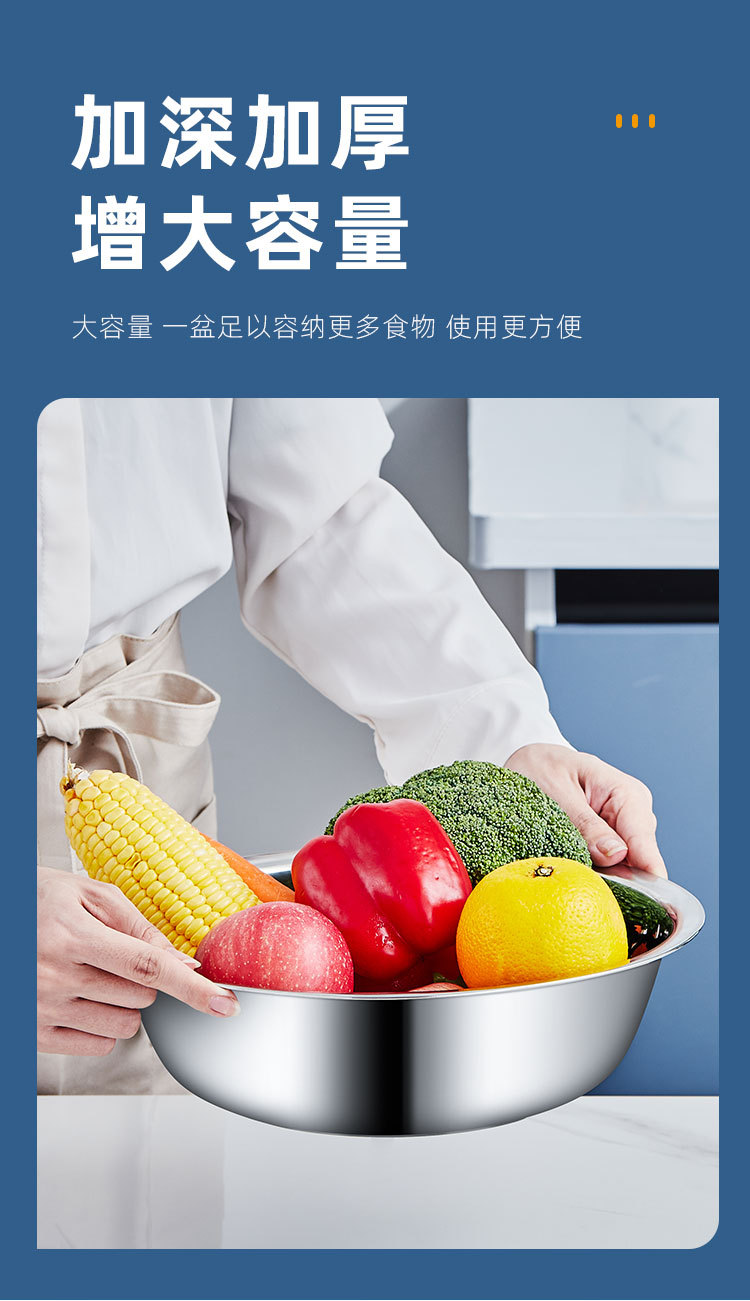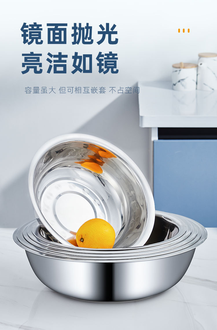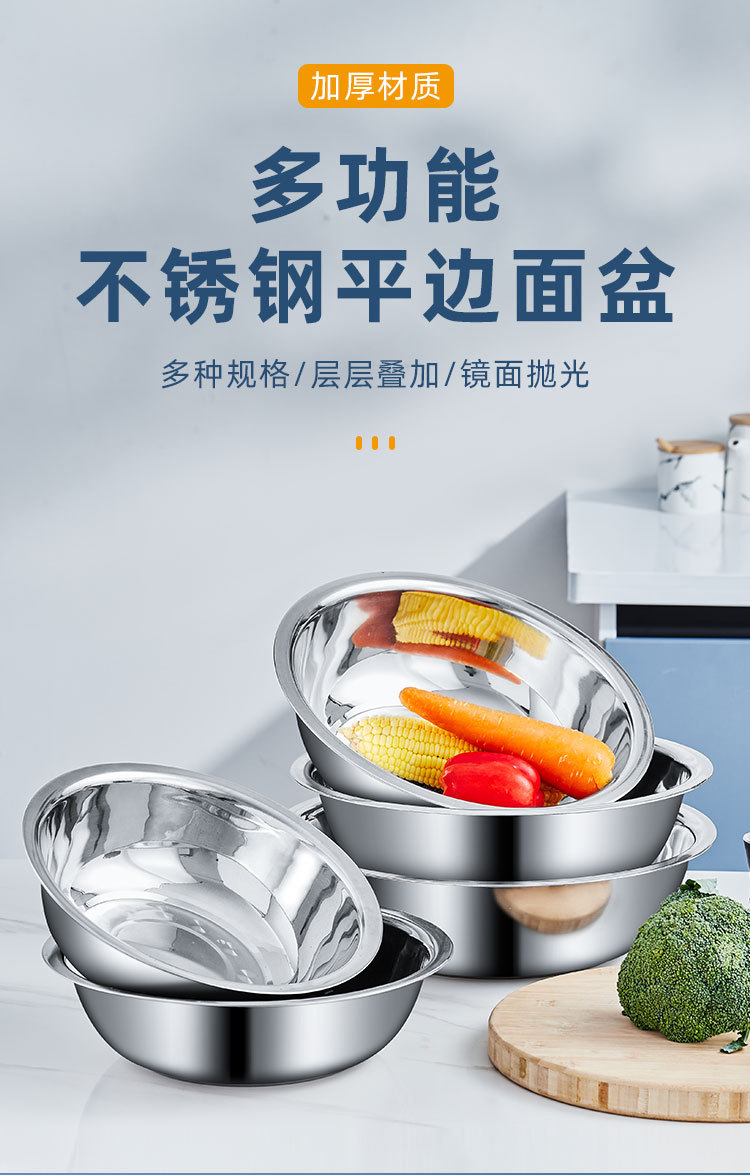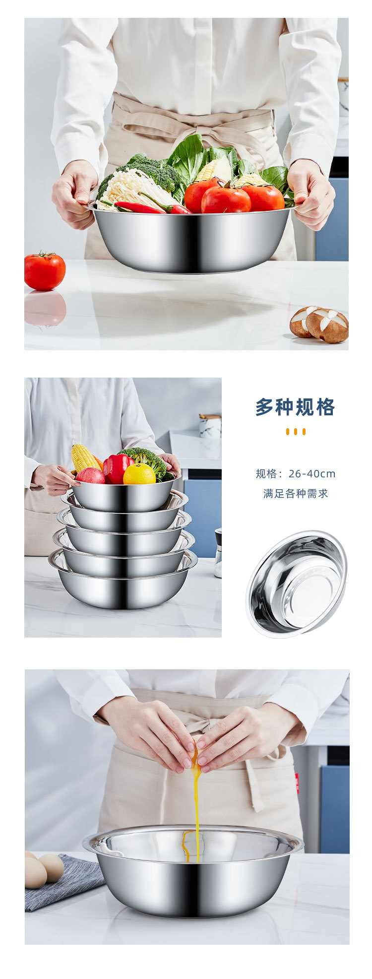 創發304ステンレス製食品グレード洗菜桶、特厚生地捏ね桶、多機能反り縁卵泡立て桶、卸売