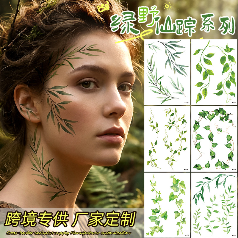 跨境欧美纹身贴防水藤蔓绿植假花叶子仿真绿萝叶网红临时纹身贴纸