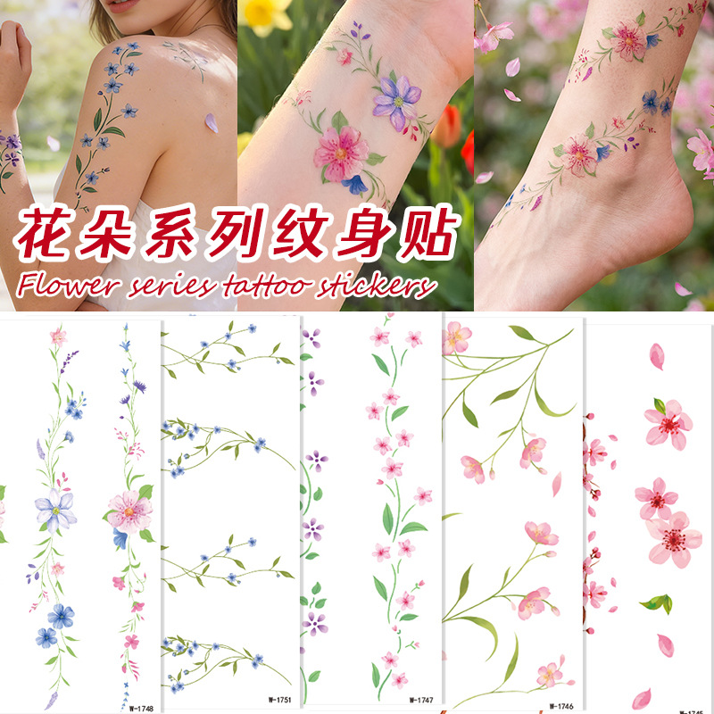 跨境多巴胺花朵彩色纹身贴防水唯美持久ins手臂小清新个性tattoos