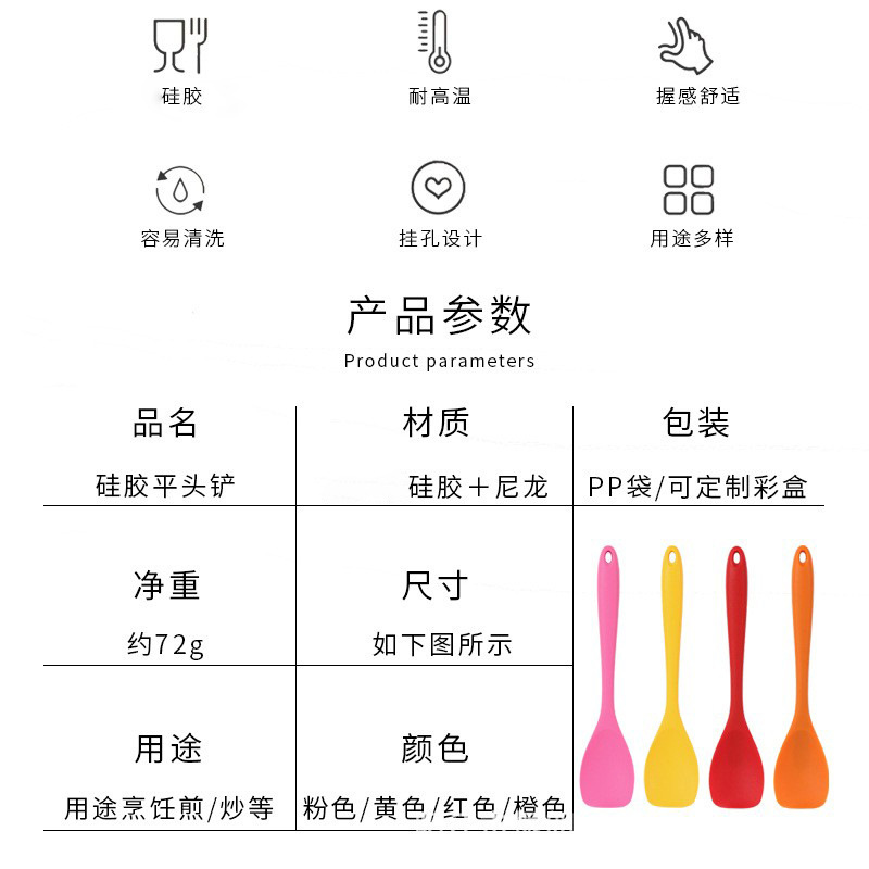 一体半透明耐高温硅胶平口铲厨房烹饪工具不伤锅防烫煎铲炒菜铲