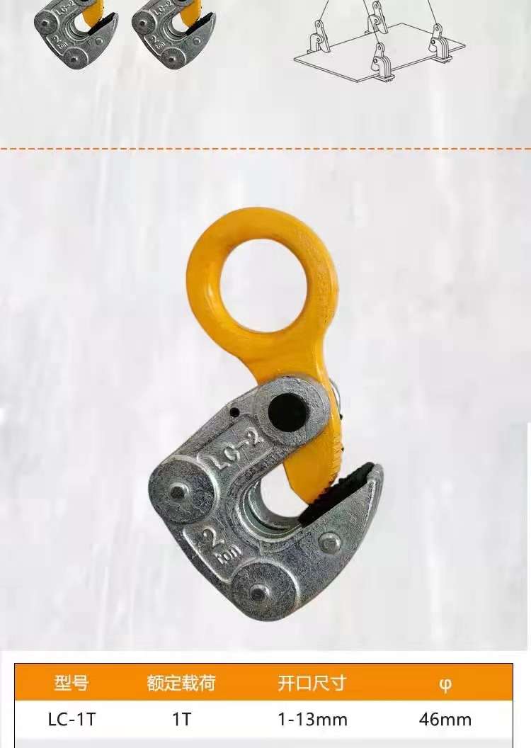 Lc型鋼板起重鉗子1t日本式横吊鋼板フック吊り具型鍛造クランプ反転平吊鉗子2トン