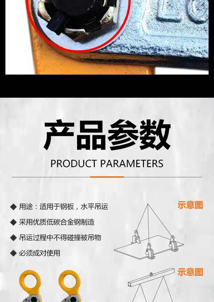鋼板クレーンクランプ縦吊り平吊りフックl型横吊り合金鋼吊りクランプ型鍛造反転吊り簡易ロープ