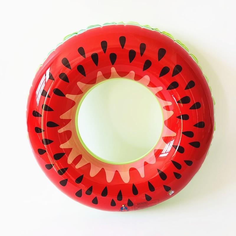 注意:文中说的西瓜泳圈尺寸是指厂里的产品模具尺寸,实物做出来因为还要做去除毛边再包边等工序,所以实际的泳圈尺寸,是会偏小一些的。