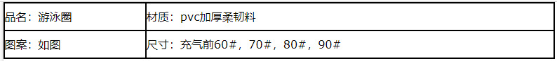 注:比如泳圈的60#尺寸指的并不是泳圈的实际直径,而是泳圈的一个尺码标。