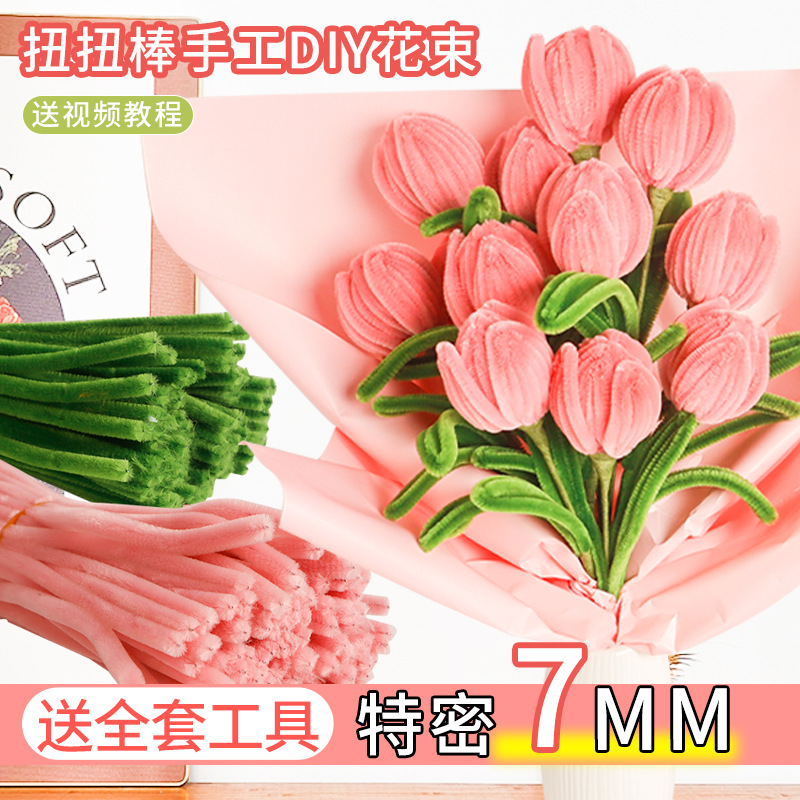 扭扭棒加密款特密毛根花束幼儿园儿童郁金香向日癸毛绒手工毛条