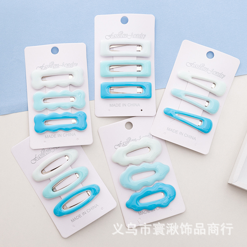 空色グラデーションbbクリップ3点セットins風後頭部髪クリップ前髪エッジクリップ少女甘い髪飾り