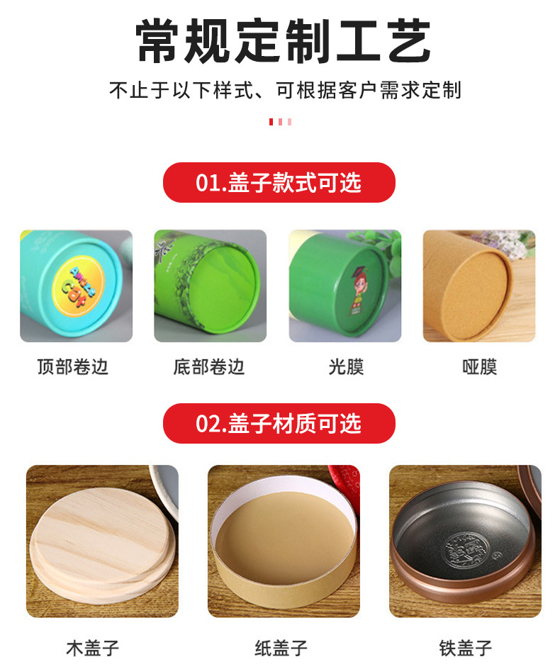 カラー印刷広告茶葉包装紙缶薯粉代食粉プレゼント紙筒円形天地蓋牛革紙缶