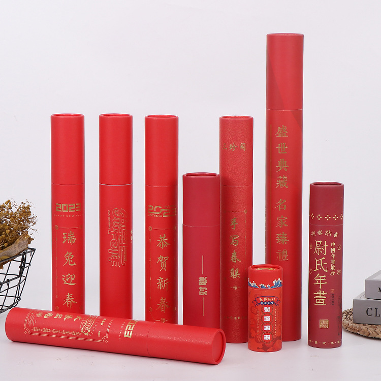 2024龍年赤色円形対聯紙筒春聯紙缶印刷箔押しロゴ卸売りカレンダー円筒カスタム