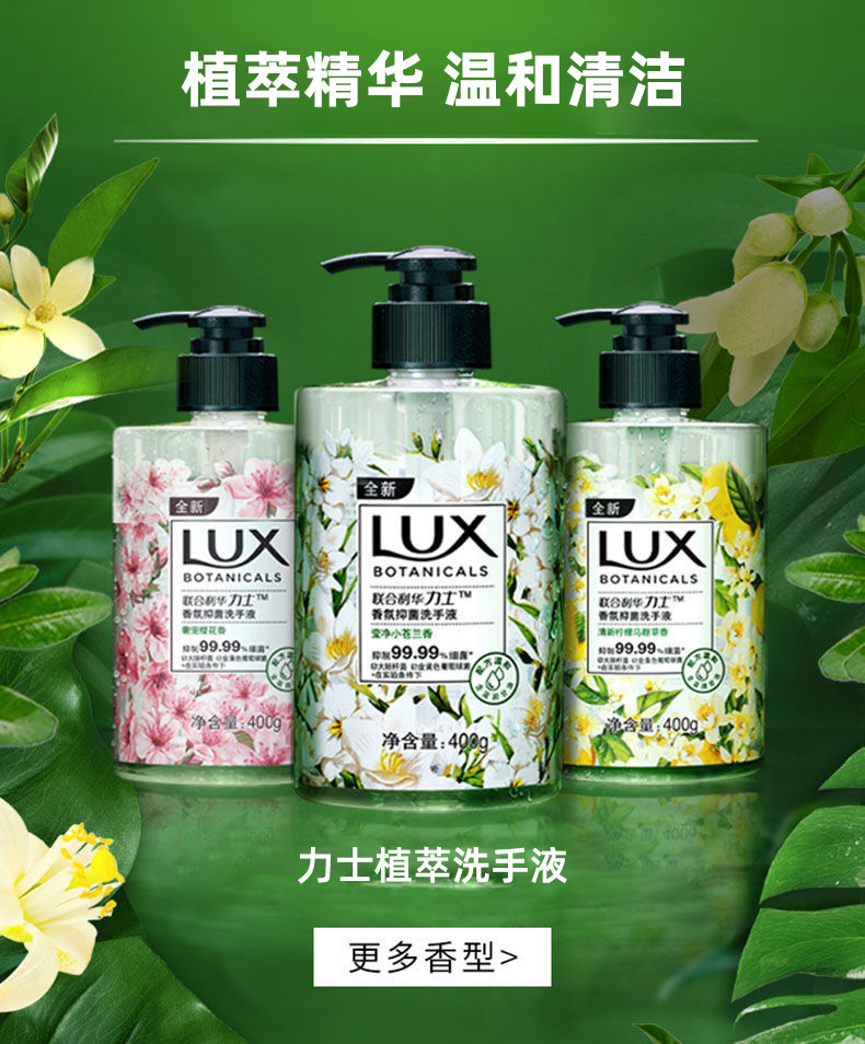 力士香氛抑菌洗手液按压瓶400g小苍兰香樱花马鞭草易冲洗家用批发