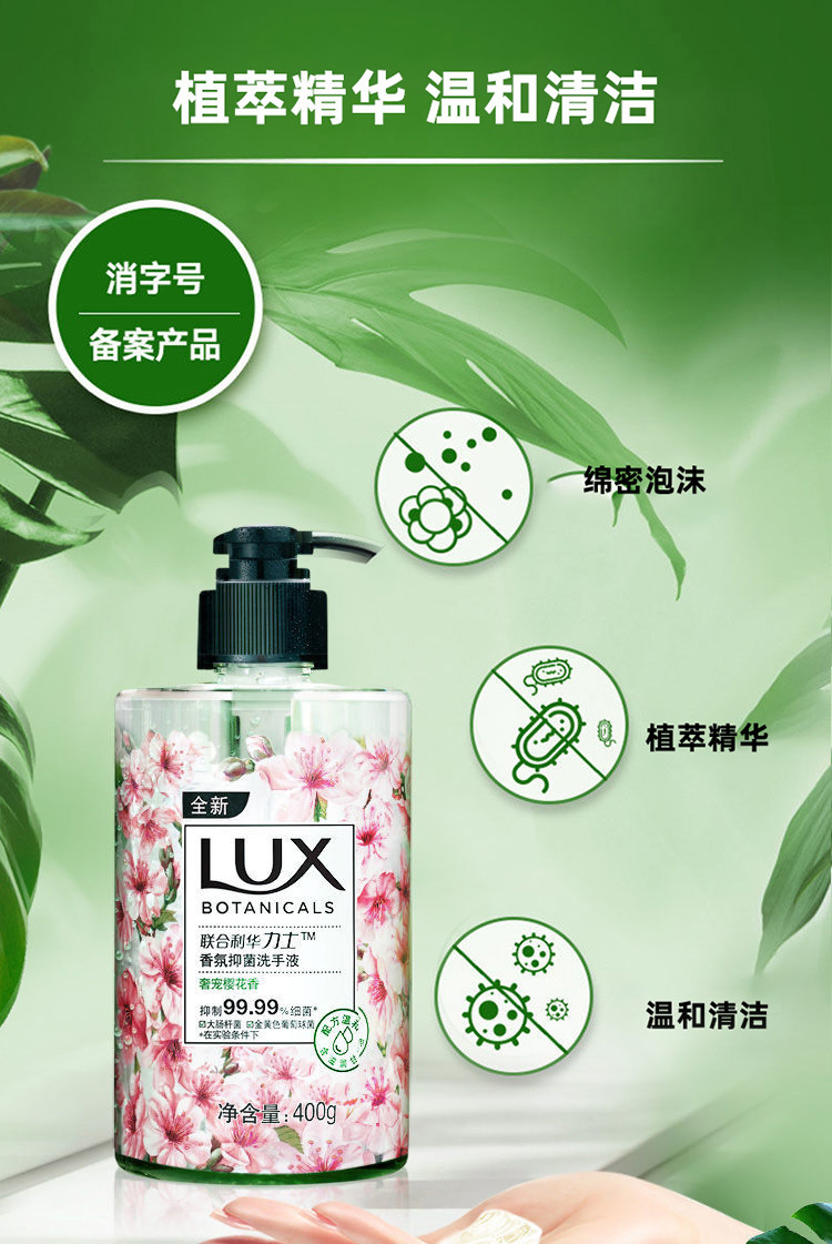 力士 (lux) の香りの雰囲気の抗菌手洗い液400gの小さい蒼蘭の桜の馬鞭の草の多種の香りの卸売りは代行します。