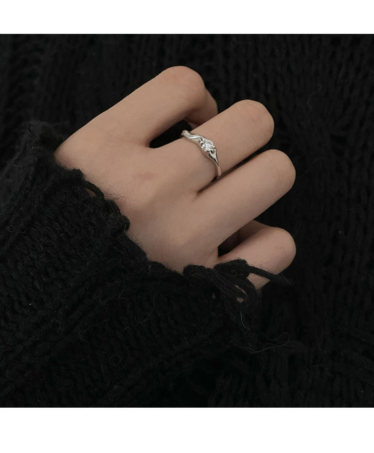 シルバーカラーリングジルコンオープンリングリングセット女性冷たい风気质カップルリングファッション个性食指戒潮