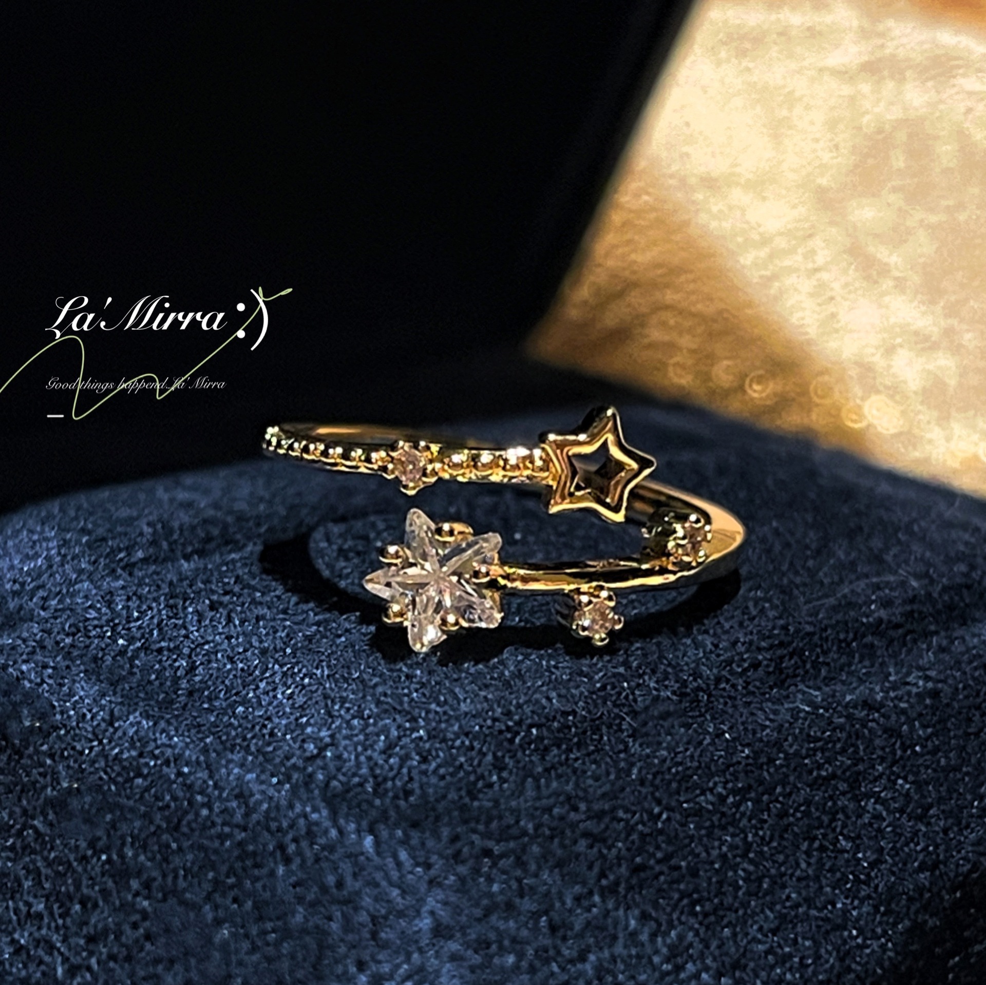 Ins流星月微嵌指輪の女性の開口部は、軽い贅沢な日韓ジルコンの星の性冷たい風の指輪を調節することができます。