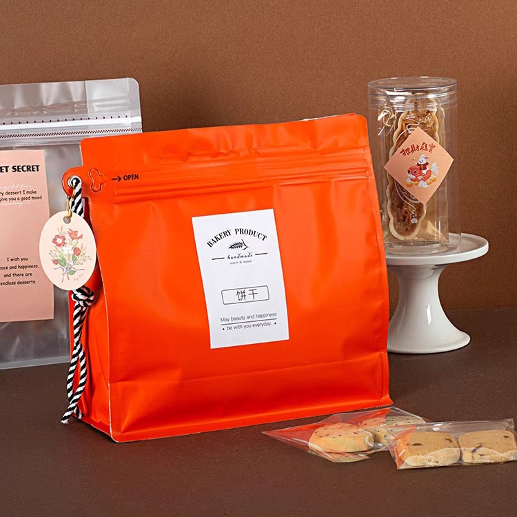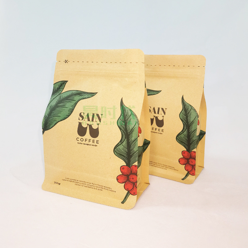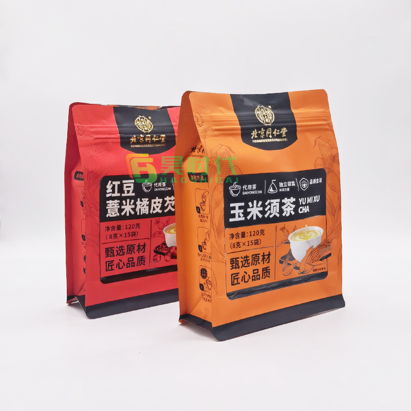 食品、紅茶、コーヒー包装袋、自立型セルフシール8面シールクラフト紙包装袋、印刷ロゴメーカー卸売