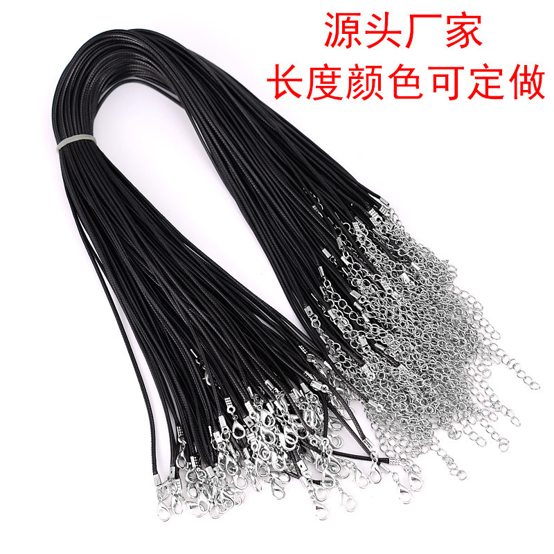 2022新韓国ワックス糸ネックレスロープ黒皮ひもペンダントロープdiyネックレスロープロブスターバックル皮ひもアクセサリーアクセサリー