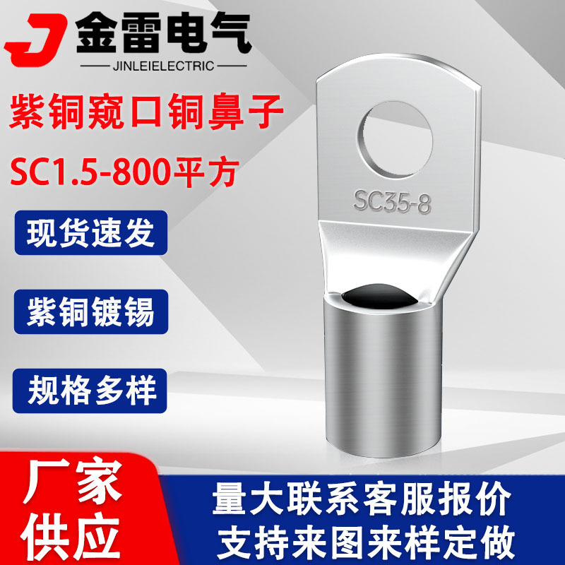 SC窥口铜鼻子紫铜镀锡6/10/25/35/50/90/120/150/240冷压接线端子