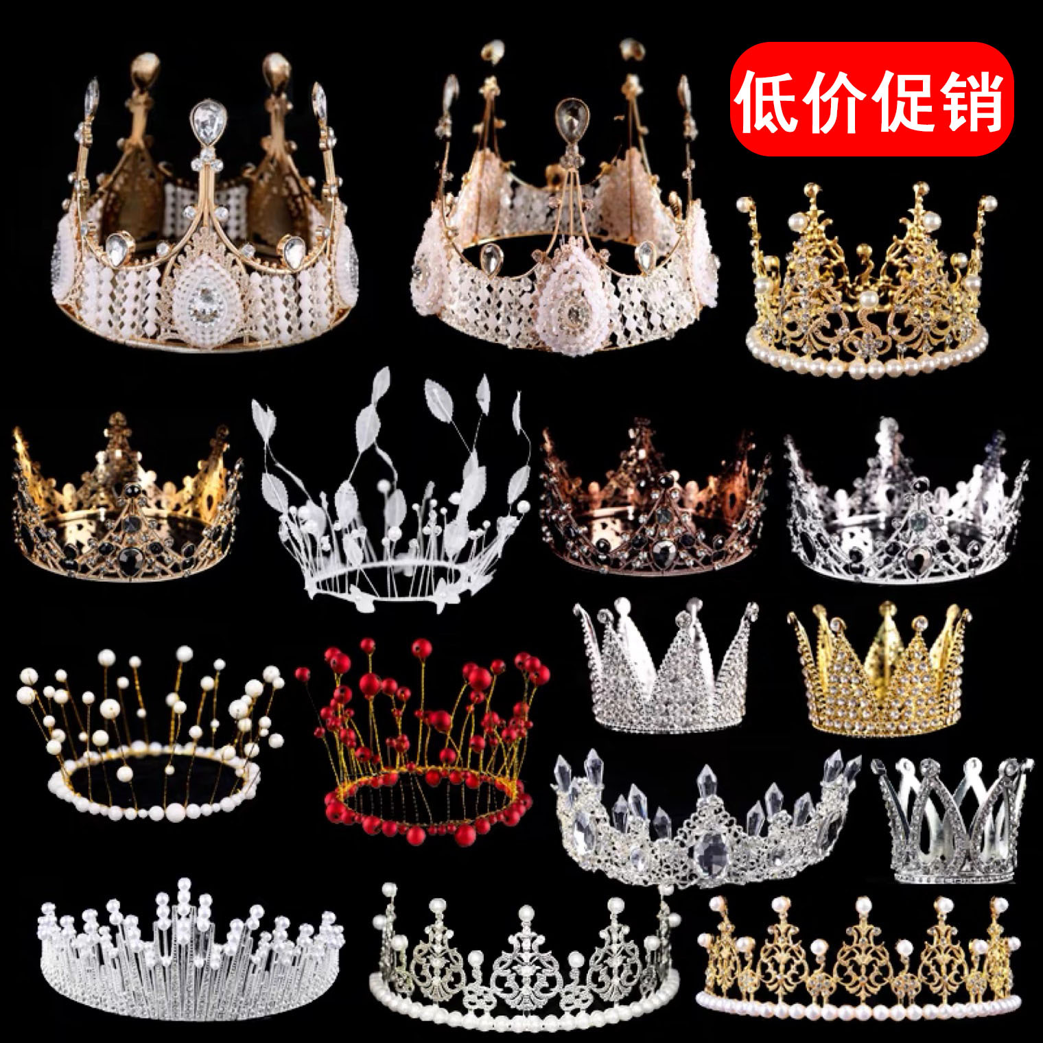 珍珠皇冠头饰公主儿童生日蛋糕装饰摆件满天星鲜花女王小皇冠配件