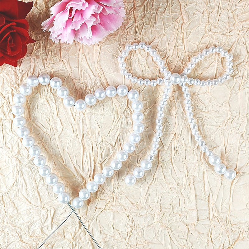 赤い真珠の蝶結びのバレンタインデーのケーキの装飾品は真珠のチェーンの愛の心を飾って小さい香ばしい風の装飾品を掛けます。
