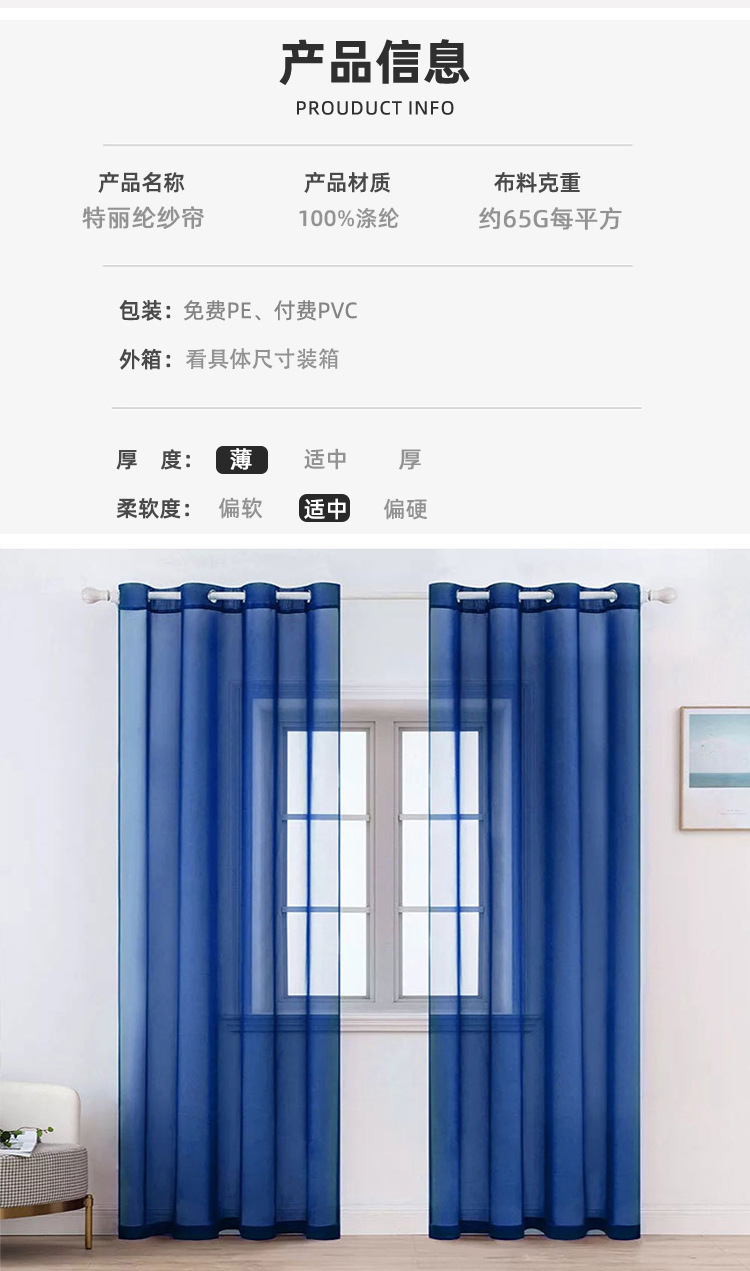 TEMU 完成品輸送外国貿易クロスボーダー無地テリレンカーテンガーゼ半遮光窓スクリーン工場卸売