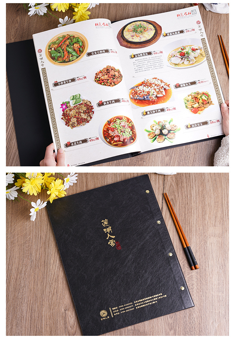 高級茶水単加工茶館茶単メニューデザイン制作ルーズリーフ皮面酒水単価格表印刷