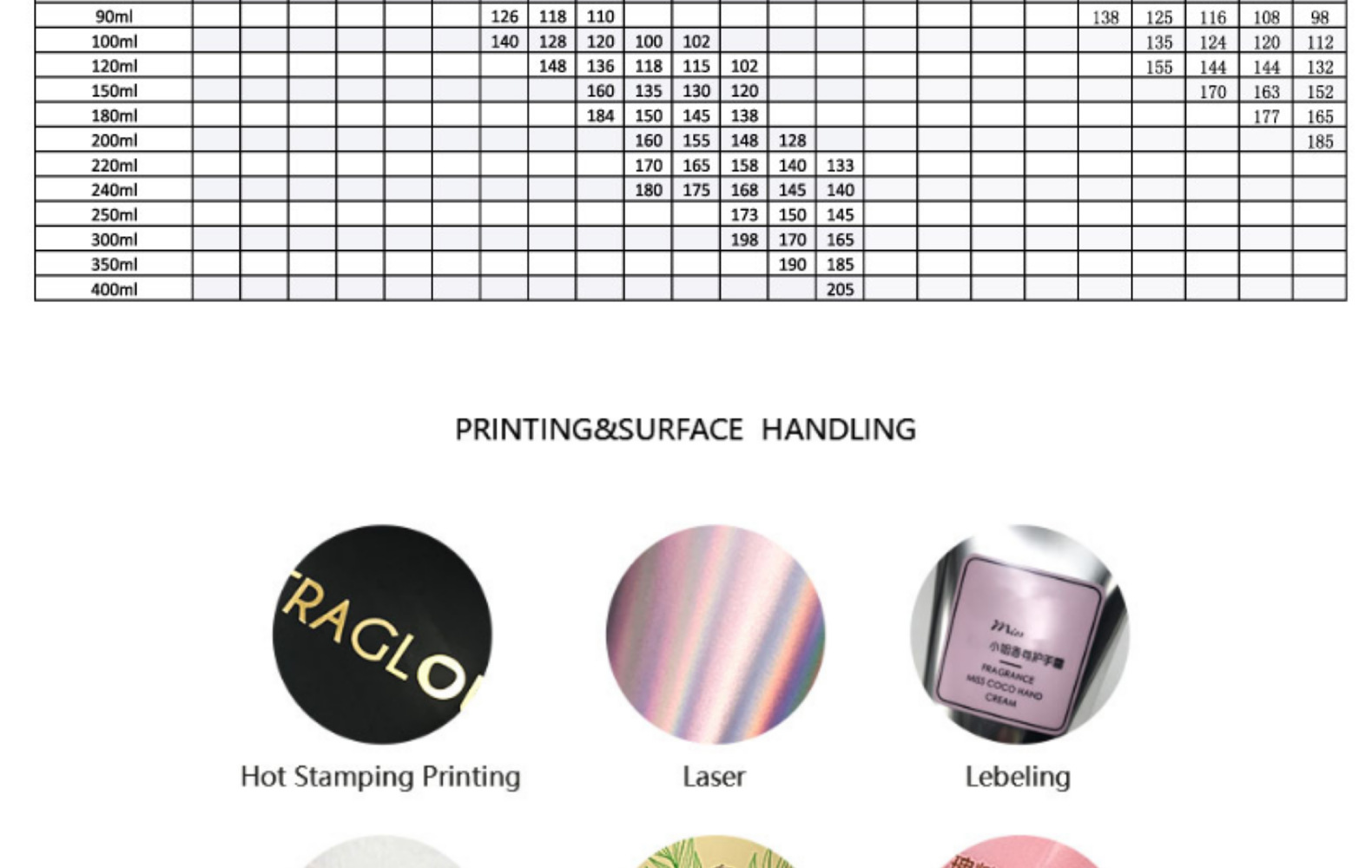 容量 50ml,100ml,120ml,カスタム容量については、お客様に連絡してください