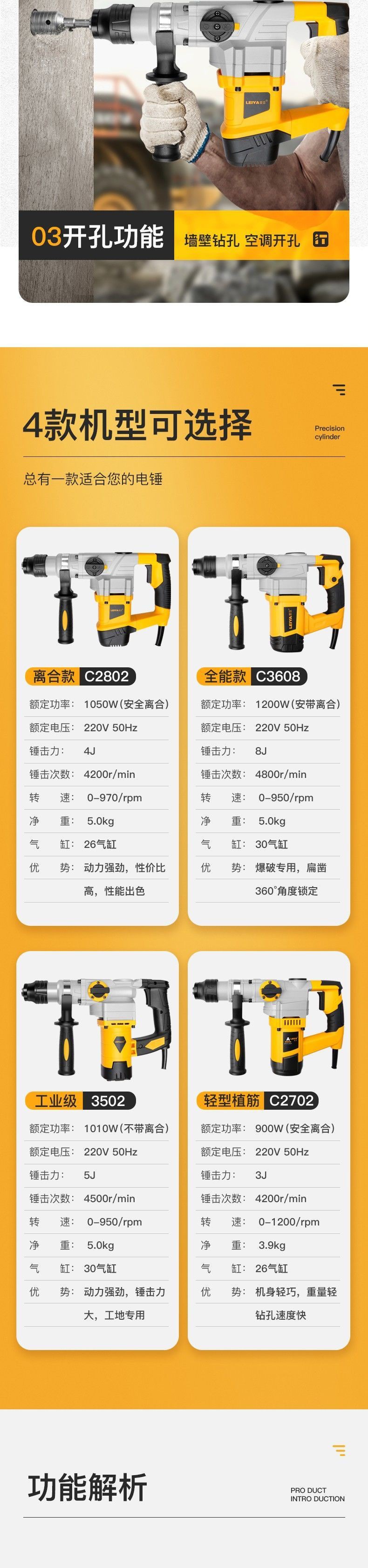 アメリカレイアハンマー電気両用多機能大出力衝撃ドリル電気ドリルコンクリート工業電動工具