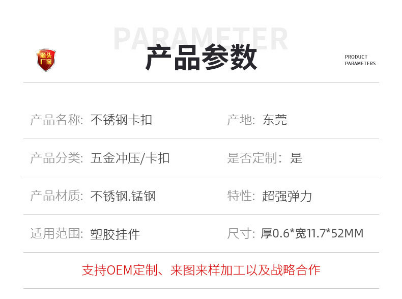 五金冲压生产301不锈钢卡扣汽车零件汽车遮阳板相框专用带双面胶