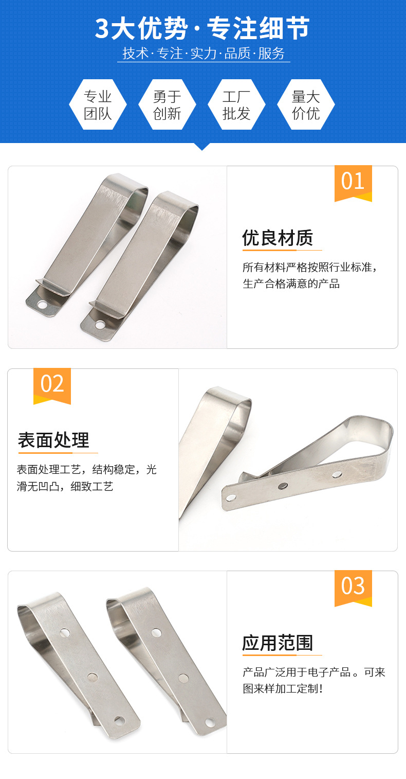 301不锈钢冲压加工汽车配件源头厂家现货批发不锈钢拉丝夹子