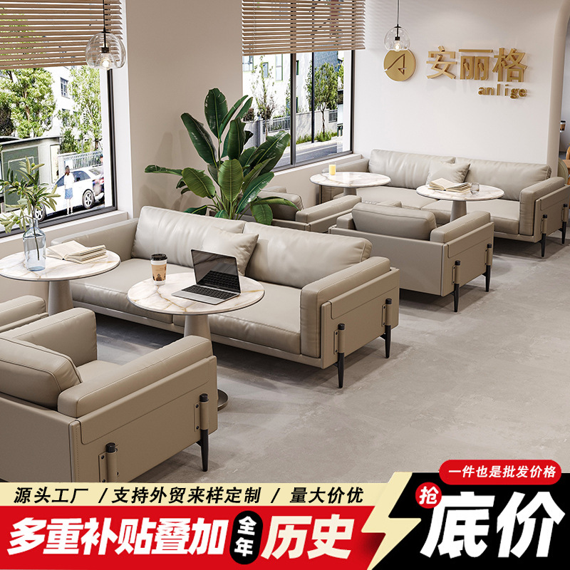本革オフィスソファシンプルモダンカジュアルビジネス応接室ティーセットオフィス用ソファ