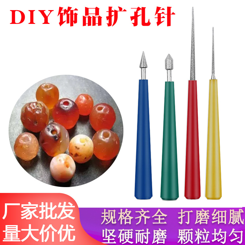 メーカー直供電気メッキ金剛砂拡孔針手作りdiy文遊び縁ビーズ真珠翡翠拡孔工具