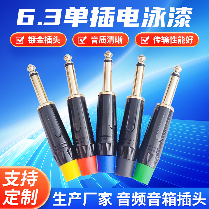 6.3単挿し緑色端子6.3モノラル音声プラグ6.3マイク溶接なしコネクタ