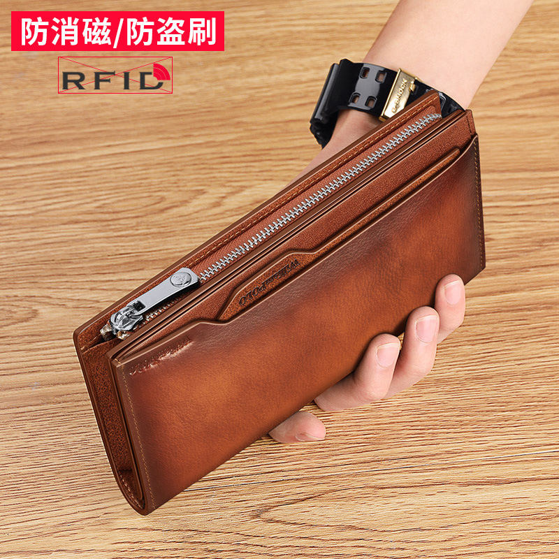 英皇ポール男性財布長型ファスナー真皮防犯ブラシ多機能財布男性カードバッグ牛革ハンドバッグ